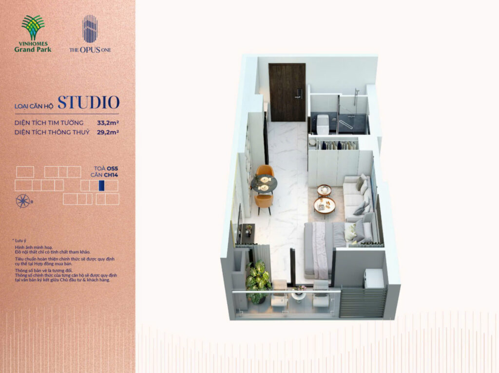 Với tiêu chuẩn bàn giao bậc nhất đại đô thị Vinhomes Grand Park, The Opus One mang đến trải nghiệm đẳng cấp với 100% nội thất liền tường, tinh tuyển từ các thương hiệu lừng danh trên thế giới: