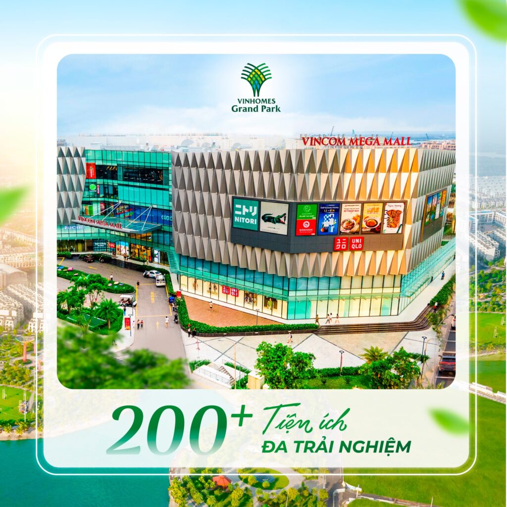 - 01 phút tới Vincom Mega Mall: Trung tâm mua sắm theo phong cách “Park-in-Mall” với hơn 140 thương hiệu nổi tiếng cùng các khu vực trải nghiệm độc đáo.